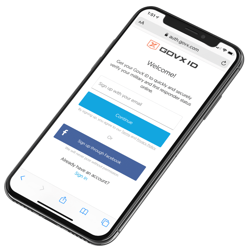 • Verify your affiliation with GovX ID — it’s instant and secure.